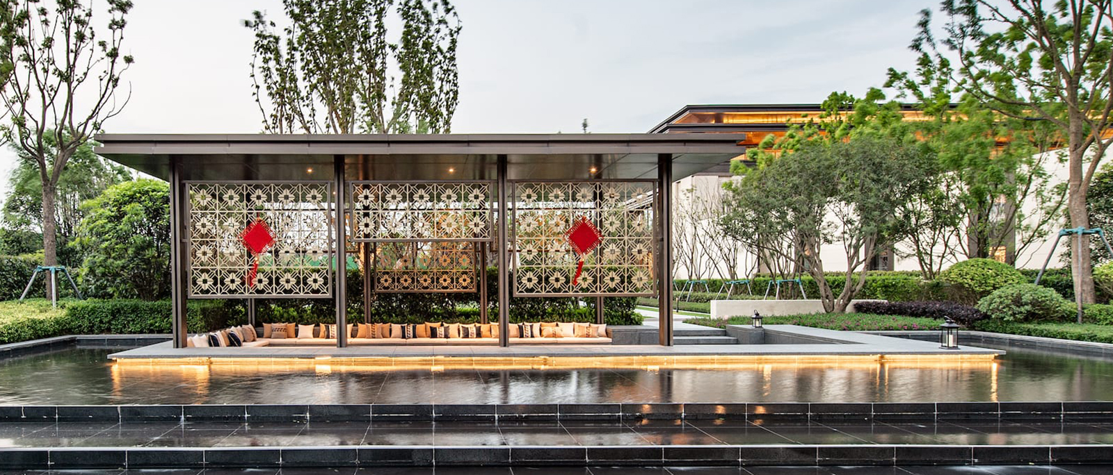 景觀延續(xù)新中式風(fēng)格,采用當(dāng)代的景觀設(shè)計語言表現(xiàn)傳統(tǒng)中國園林的精神內(nèi)涵,將現(xiàn)代元素和傳統(tǒng)元素有機的結(jié)合在一起,以現(xiàn)代人的功能需求和審美愛好來打造富有傳統(tǒng)韻味的園林景觀,讓傳統(tǒng)藝術(shù)在當(dāng)今社會得到合適體現(xiàn)。