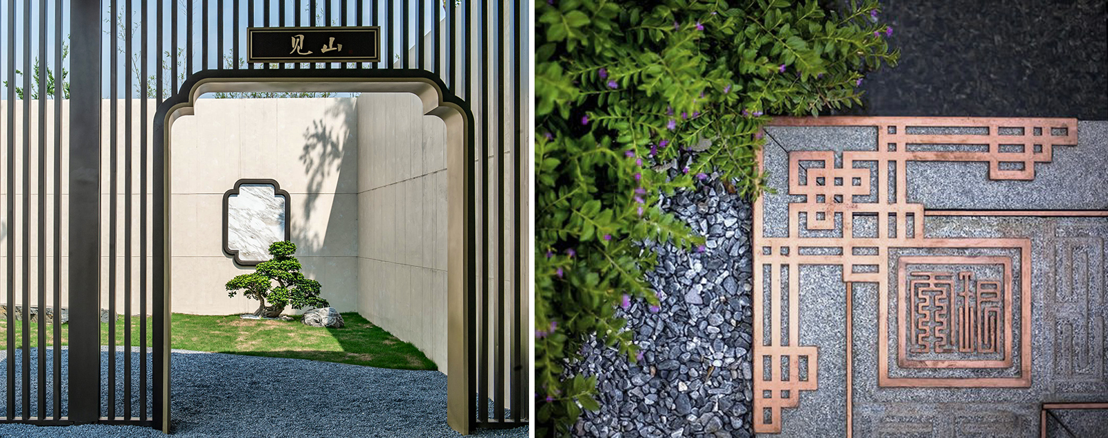“璽”至高無上也,“瑯”從玉,良聲,形容似玉的美石,在每一進(jìn)空間中,融入展現(xiàn) “玉石氣質(zhì)” 的景觀元素,形成整體景觀亮點。