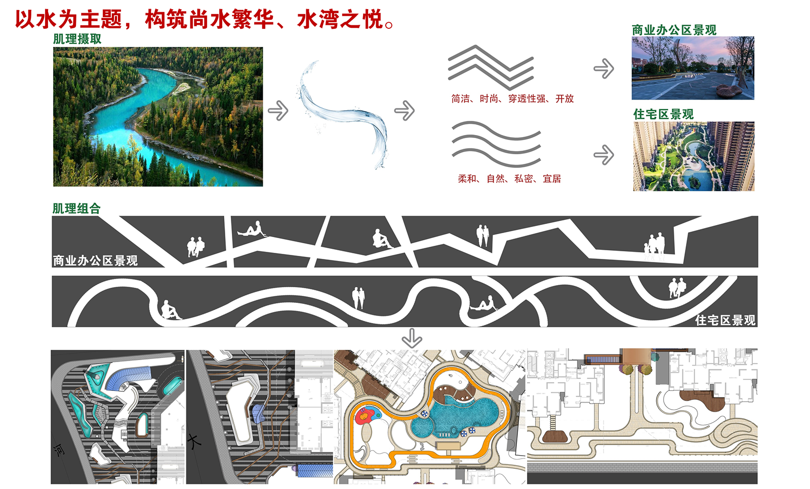 設(shè)計(jì)理念:依據(jù)建筑風(fēng)格與布局,設(shè)計(jì)提出一半都市、一半花園的設(shè)計(jì)理念。