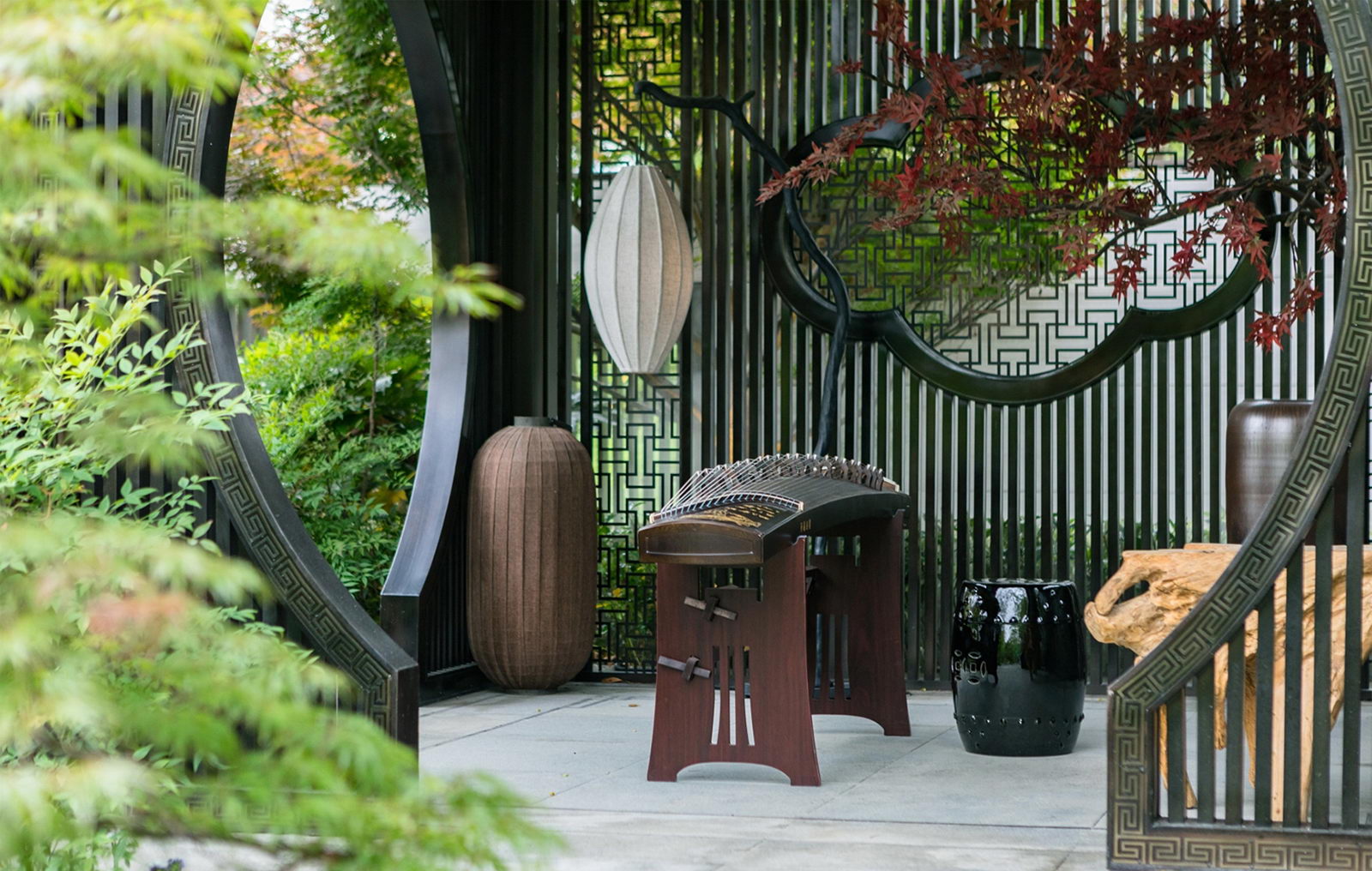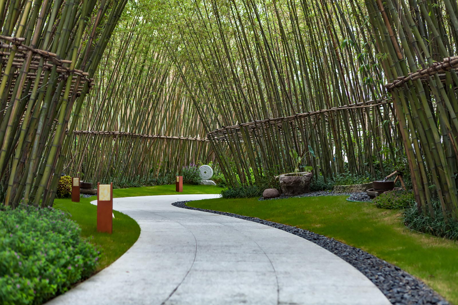 主題旱溪借用蘇州古典園林“破隅” 設計手法,以微縮旱溪作為耒水一隅一脈,與耒水虛實輝映,以小見大,互妙相生。